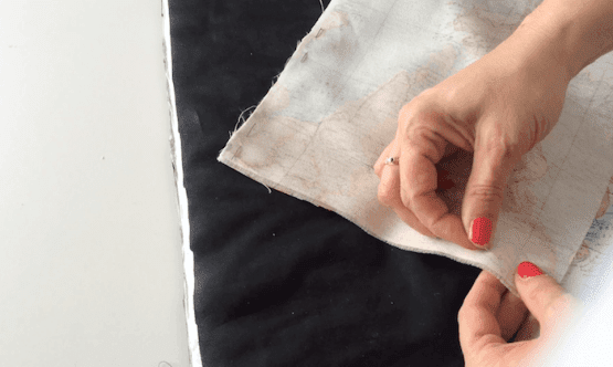 Luego damos la vuelta y ponemos del derecho y metemos el forro revés contra revés dentro del bolso, si vemos que sobresale un poquito del forro lo recortamos, ahí ponemos con alfileres la cremallera, entre el forro y la tela exterior y cosemos.