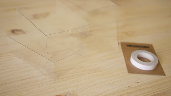 Con la parte transparente de las cajitas se construye la estructura pegándolas entre sí con la cinta de doble cara.
