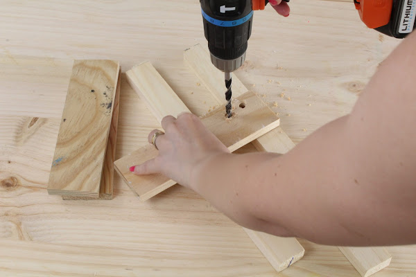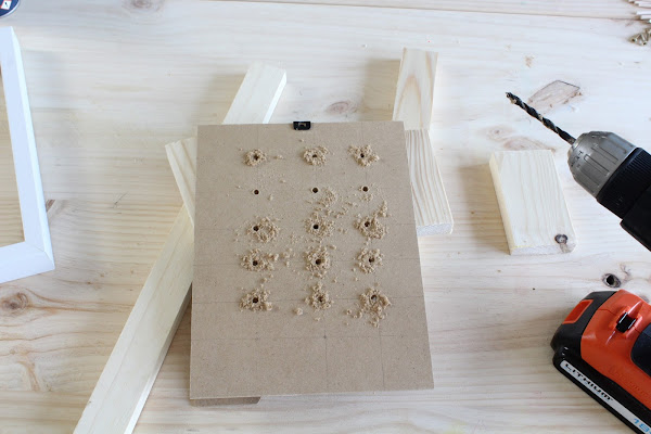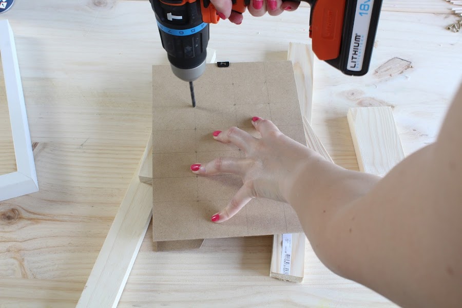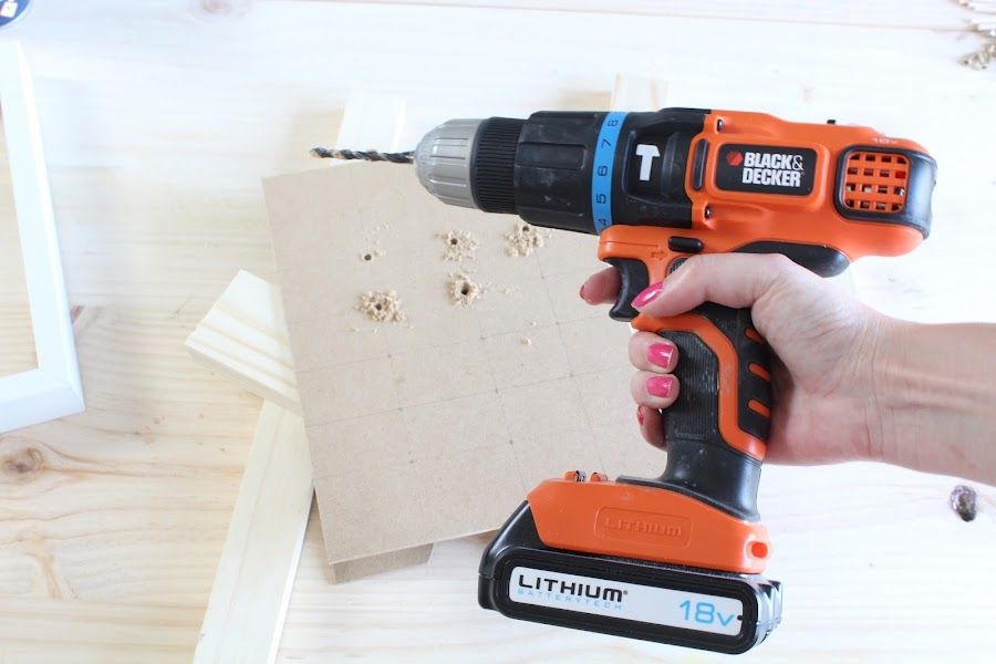 2 Paso: Haremos un agujero en cada intersección de la cuadricula, para taladrar mejor la madera cambiaremos la posición en el anillo azul. ( mirar bien las instrucciones)