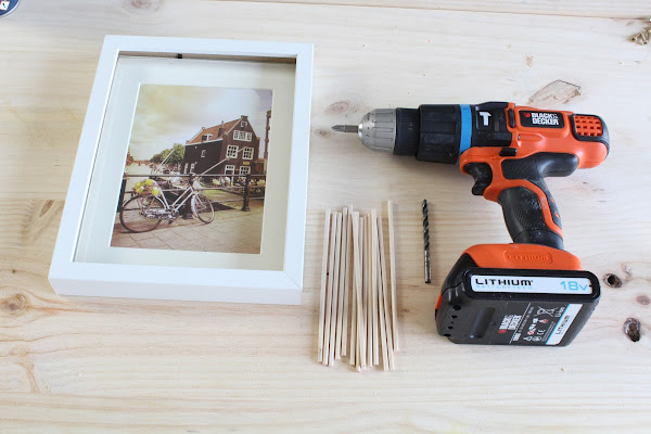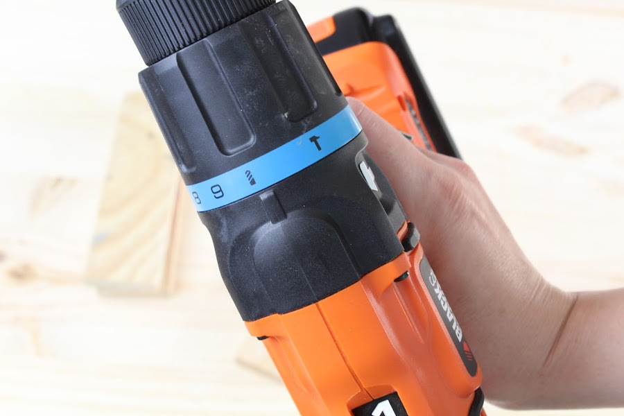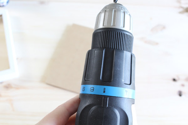 1 Paso: Haremos los agujeros que nos servirán para poner los lapices, para ello montaremos la broca y cambiaremos el modo en el anillo azul. Una vez tengamos los agujeros hechos, lijaremos bien la zona.