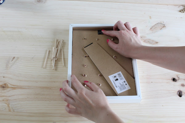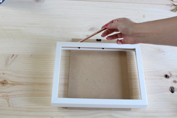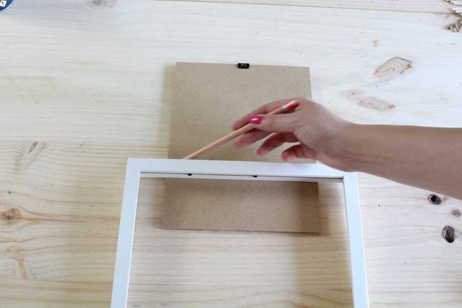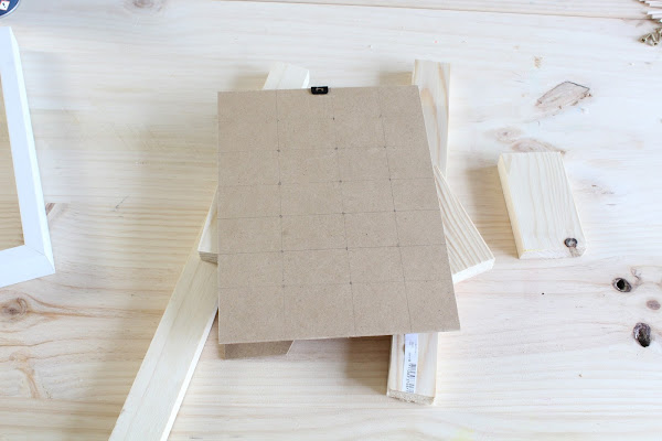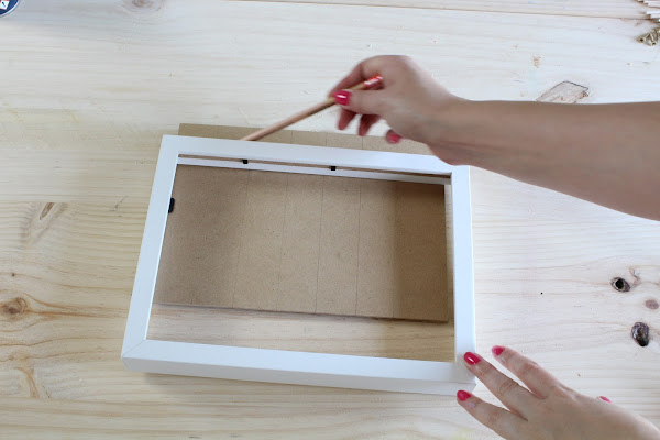 1 Paso: Desmontaremos el marco (el cristal no lo usaremos), y marcaremos en la trasera del marco una cuadricula.