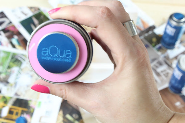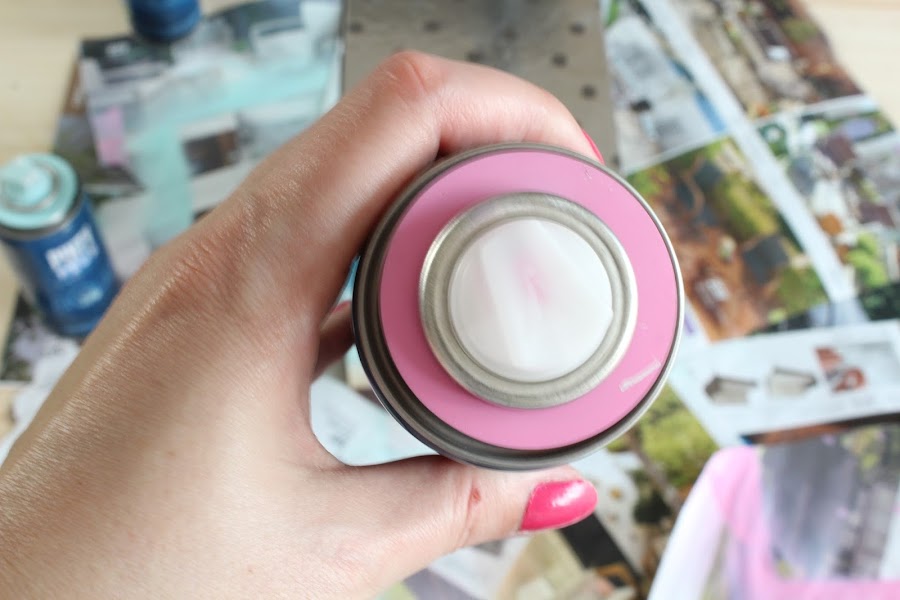 4 Paso: Pintaremos nuestro calificador con pintura en spray Aqua de Novasol, los colores que he escogido son: Rosa pastel, amarillo pastel, blanco y turquesa.