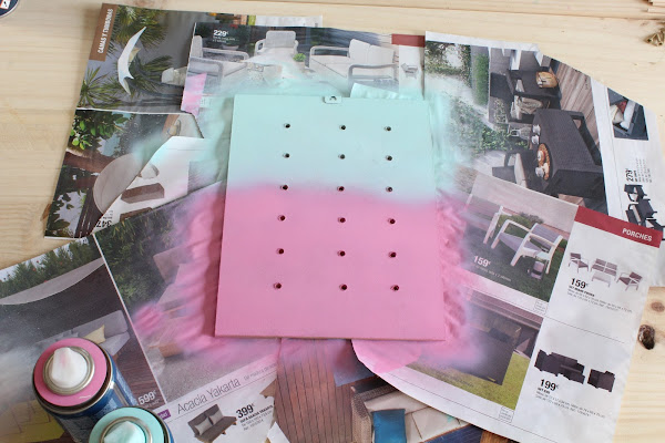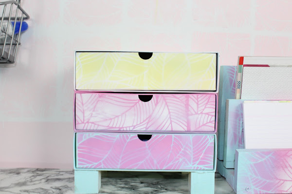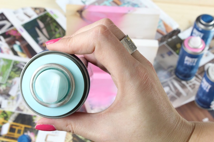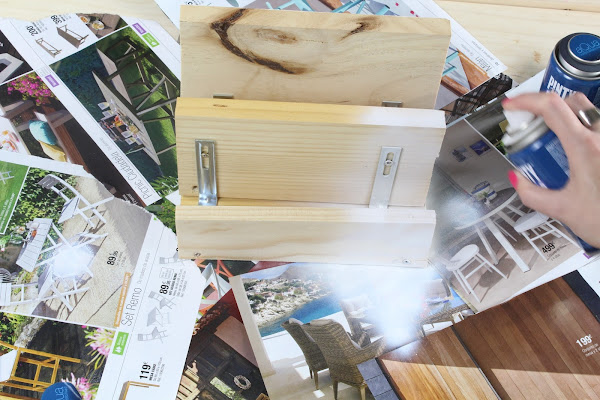 3 Paso: Pintaremos la cajonera con pintura en spray, utilizando la misma gama de colores que en los anteriores DIYs.