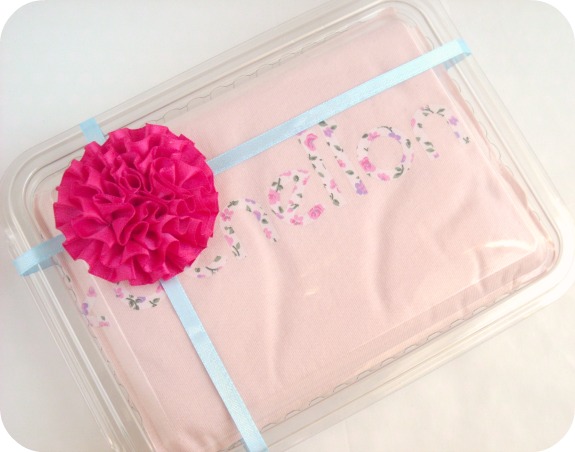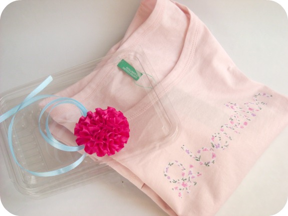Y luego, con un lazo azul y un pompón fuxia que tenia de una diadema conseguí un packaging perfecto para regalar una camiseta.