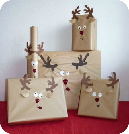Sobran las palabras con esta forma de envolver los regalos no? jejejeje me parece lo mas de lo mas!!! Con cuatro recortes tendremos un envoltorio de lo mas simpático y navideño. Me parece super acertado para los mas pequeños de la casa.