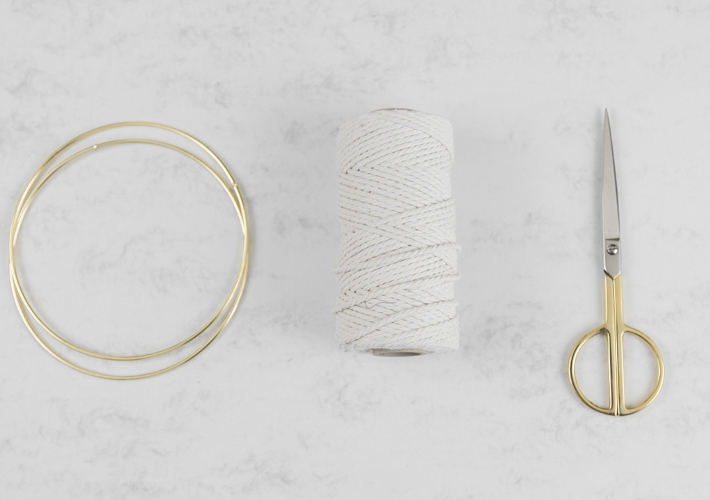 Ponemos ocho hebras en cada aro doblándolas por la mitad.