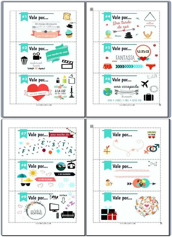 Lo primero: No se trata de escribir en varios papeles algunas proposiciones. No, se trata que trabajes un poco y crees bonitas tarjetas que luego escondan buenos planes, que pueden ir desde actividades para hacer juntos, cosas eróticas o sexuales, compras o viajes.