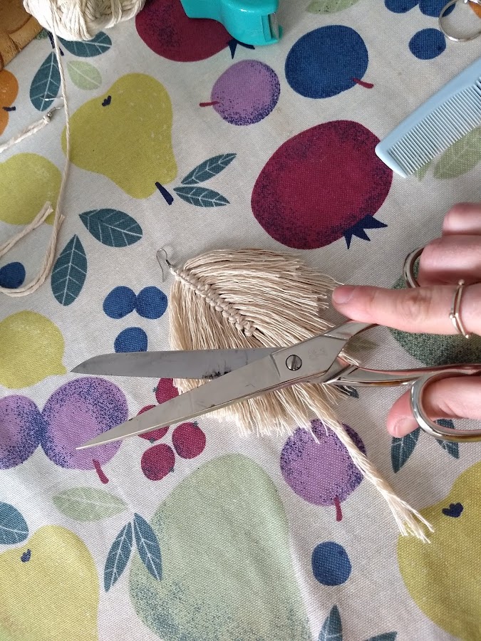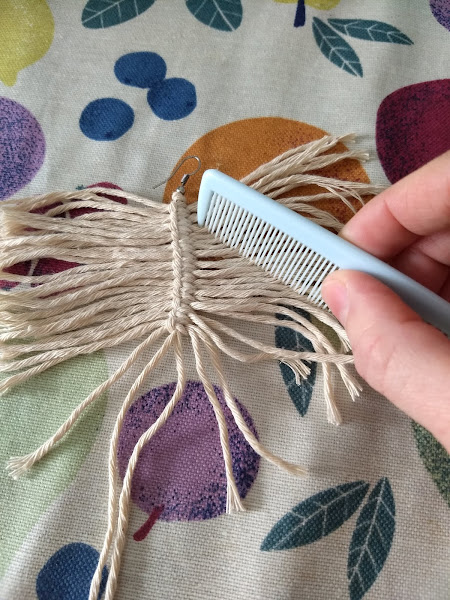 Una vez colocados los 26 hilos, haremos un nudo al final de todo y peinaremos con un pendiente para deshacer las hebras del hilo.