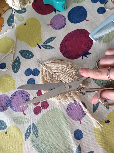 Cortamos con la tijera. Pero no es el primer corte así que no quitéis demasiados hilos ¿Vale?