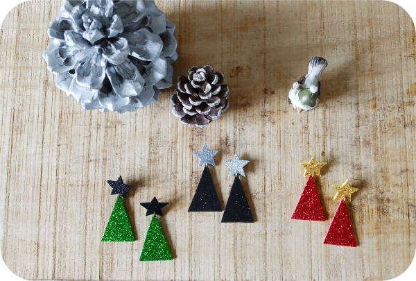 Por último, pegamos las bases de los pendientes a las partes traseras de las estrellas y una vez secos ¡¡podremos presumir de ser las más navideñas!!