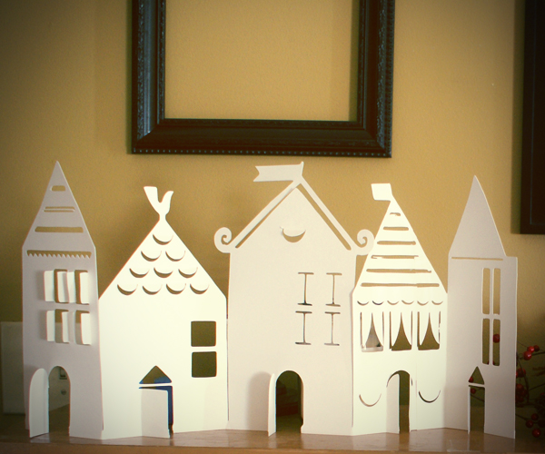 El DIY podéis encontrarlo en la página Saved by Love Creations en la cual también podréis descargar la plantilla para hacerlo. Tan solo necesitas cartulina, y para que a la hora de cortar os resulte más cómodo recortar los detalles un cuter de precisión. Una vez cortadas, doblamos por la junta que hay entre las casas y listo, con estos sencillos materiales y pasos ya tenemos nuestro poblado navideño.