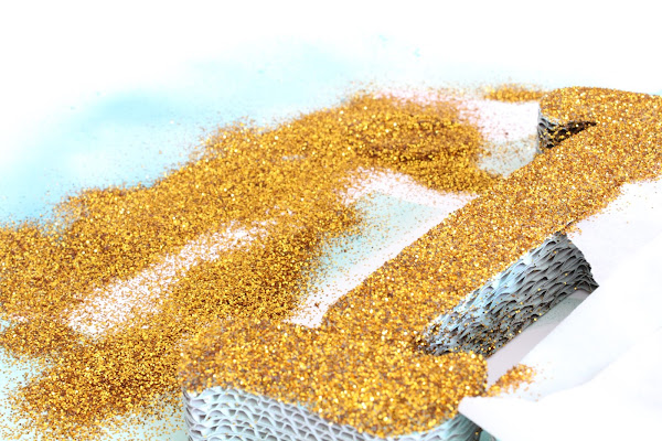 Por ultimo un toque de purpurina dorada, para hacerlo he usado adhesivo en spray y para fijarla bien una capa de barniz.