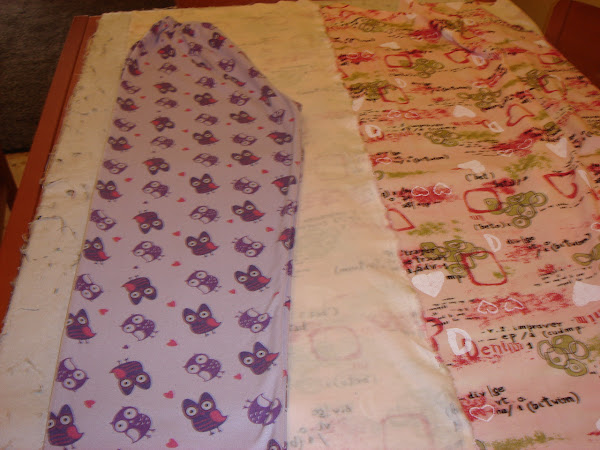 Empezamos doblando un lado de la tela encarando los derechos y colocamos encima un pantalon de pijama que nos venga bien.
