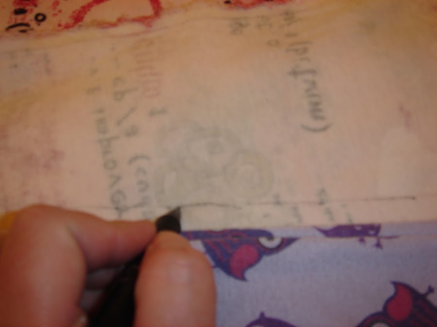 Dibujamos el motivo , recortamos la tela y entretela para que el aplique de tela tenga mas cuerpo.