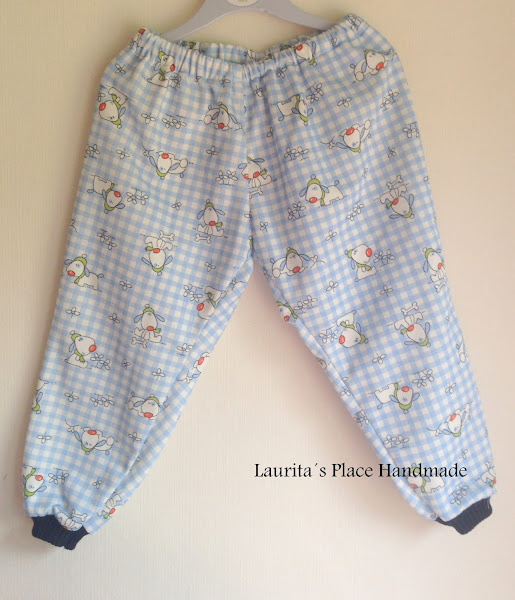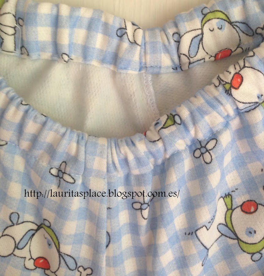 El pantalón es muy sencillo de coser, con la remalladora se hace muy rápido. En cintura lleva una goma y el los bajos tela de puño.