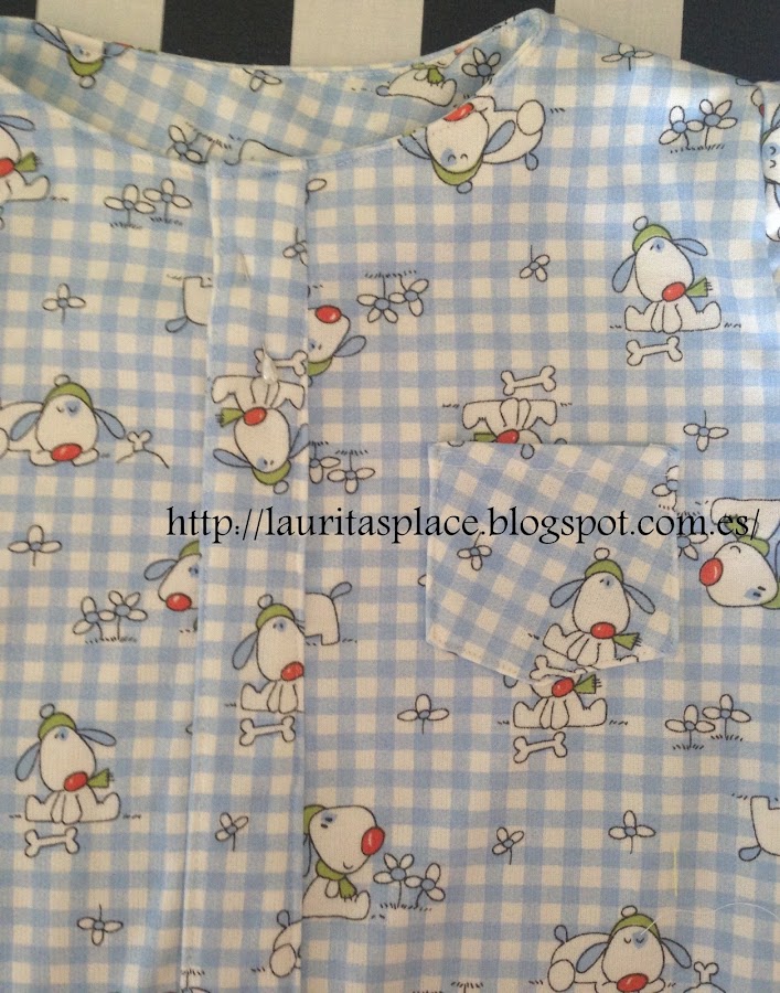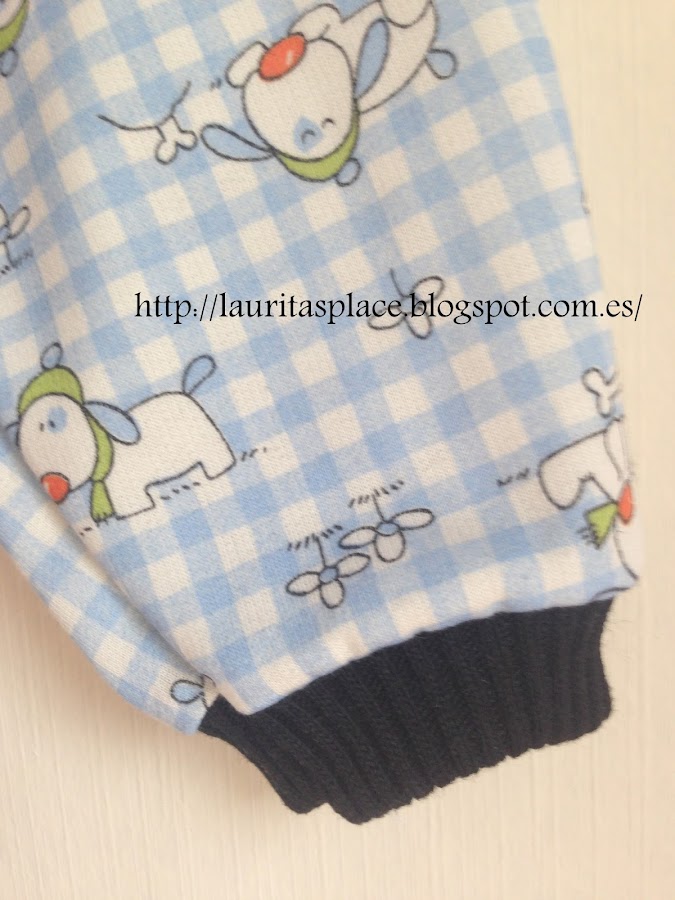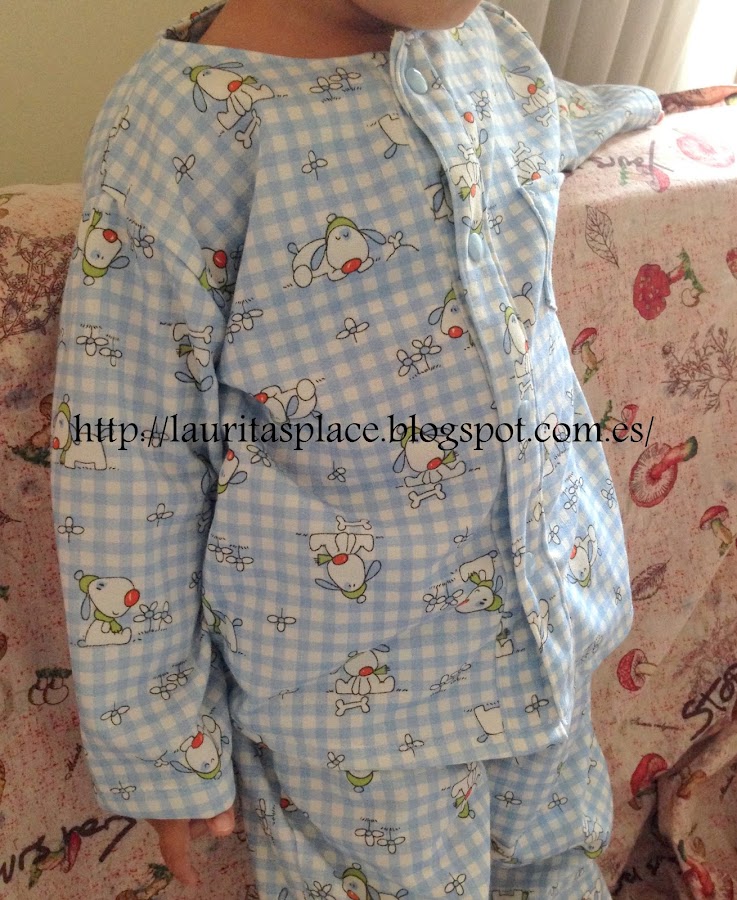 Os dejo las fotos con relleno porque en cuanto lo ha visto ha querido ponérselo corriendo. ¡Le encanta su nuevo pijama de perritos!
