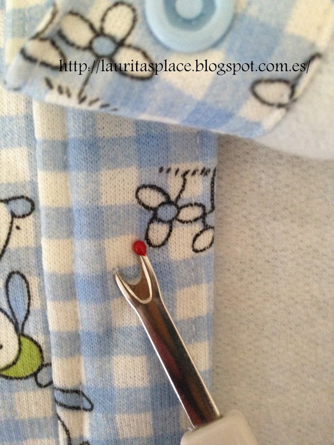 Así que esta vez he utilizado un pijama que se ha convertido en su favorito desde que lo compramos y una tela tipo forro polar muy suave que tenía guardada desde el año pasado y fue comprada muy baratita en una tienda de A Coruña...qué ganas tengo de volver a A Coruña a la famosa tienda de restos de Nanos...