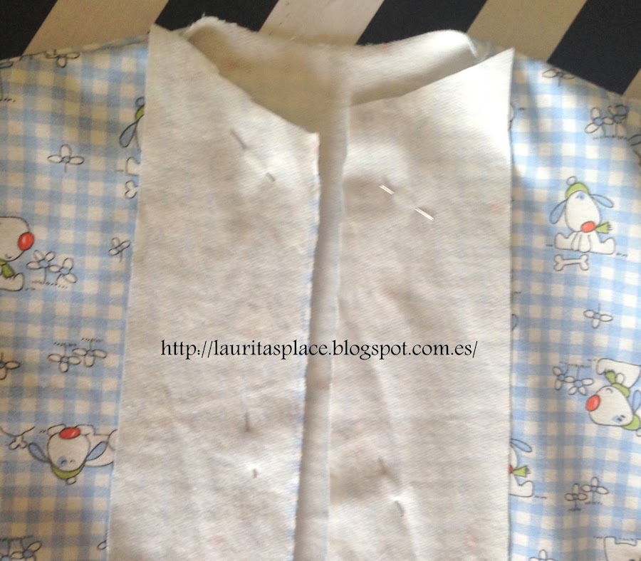Decidí no hacer un cuello nono porque es más costoso y creo que a mi peque tampoco le hacen mucha gracia los cuellos ni nada que ajuste al cuello que le pueda molestar, así que otra vista y a coser. Por la parte interior de la vista del cuello simplemente la he sobrehilado y la he dejado suelta.