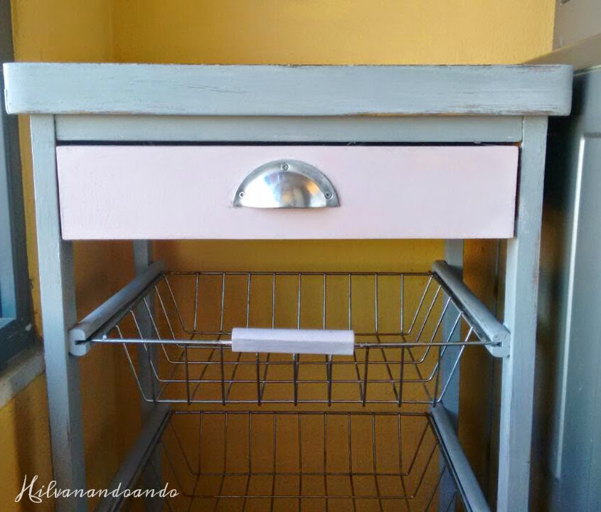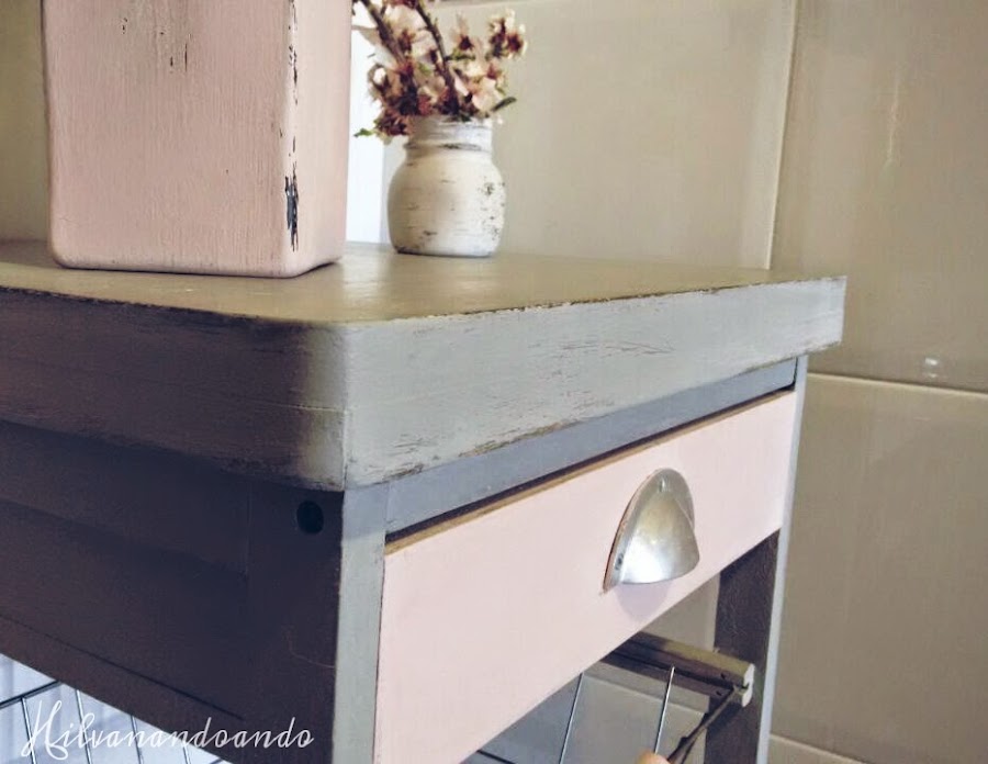 Combiné el color gris para todo el mueble junto al rosa para el frente de los cajones.