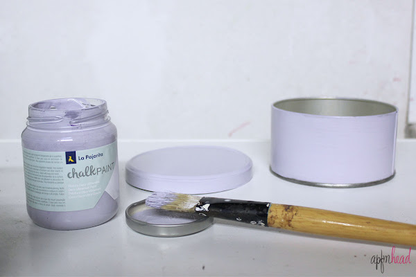 Busqué por casa algo que pintar y encontré esta caja metálica. Escogí un color de los 6 que me habían tocado, tenía que ser el violeta, y a pintar la caja :)