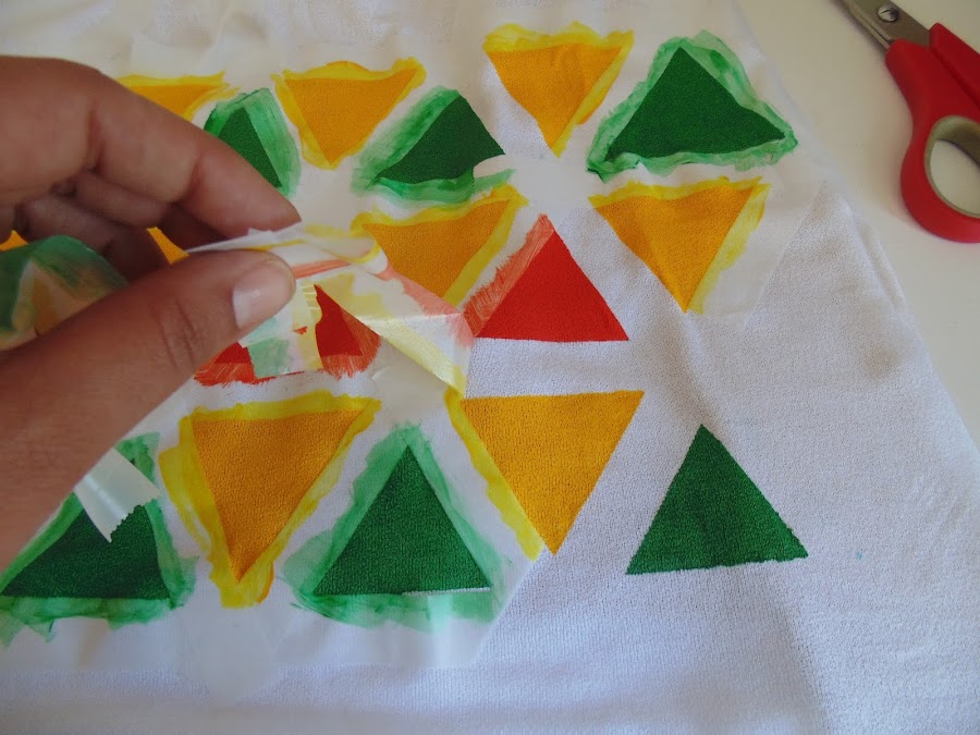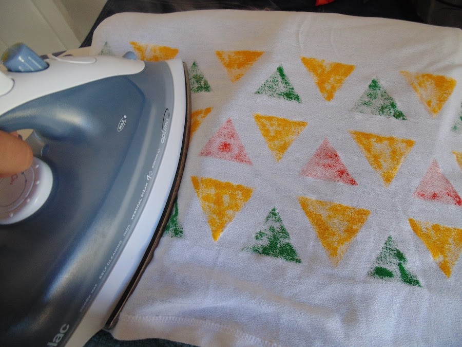 Esperé que se secara bien y fue quitando la cinta, para sellar la pintura, normalmente, hay que planchar por el revés.