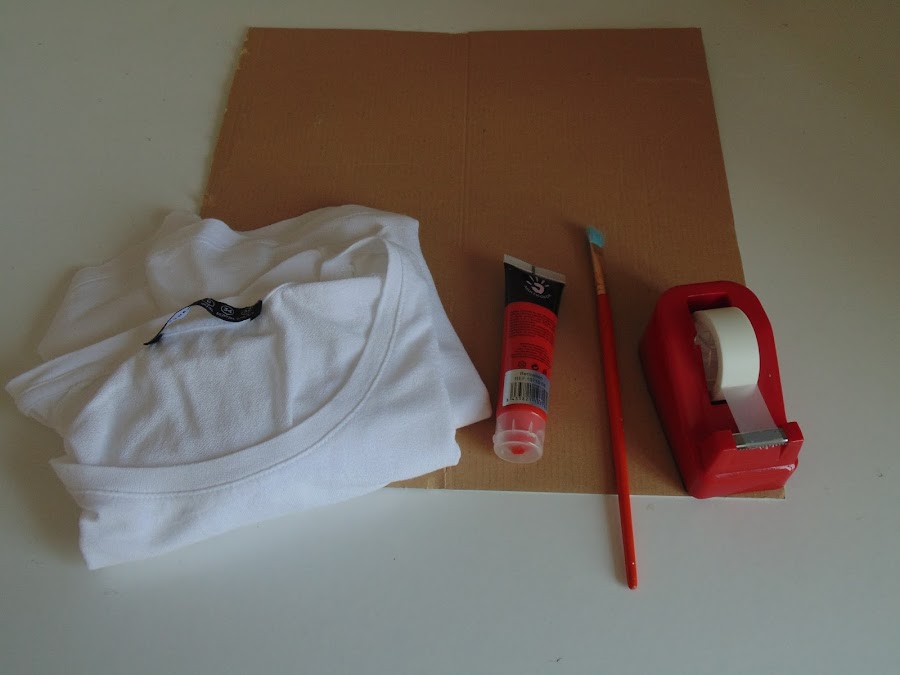 Antes de empezar a pintura, coloqué un cartón entre las dos partes de la camiseta, para evitar manchar la parte detrás con pintura.