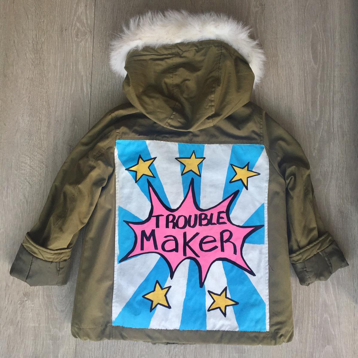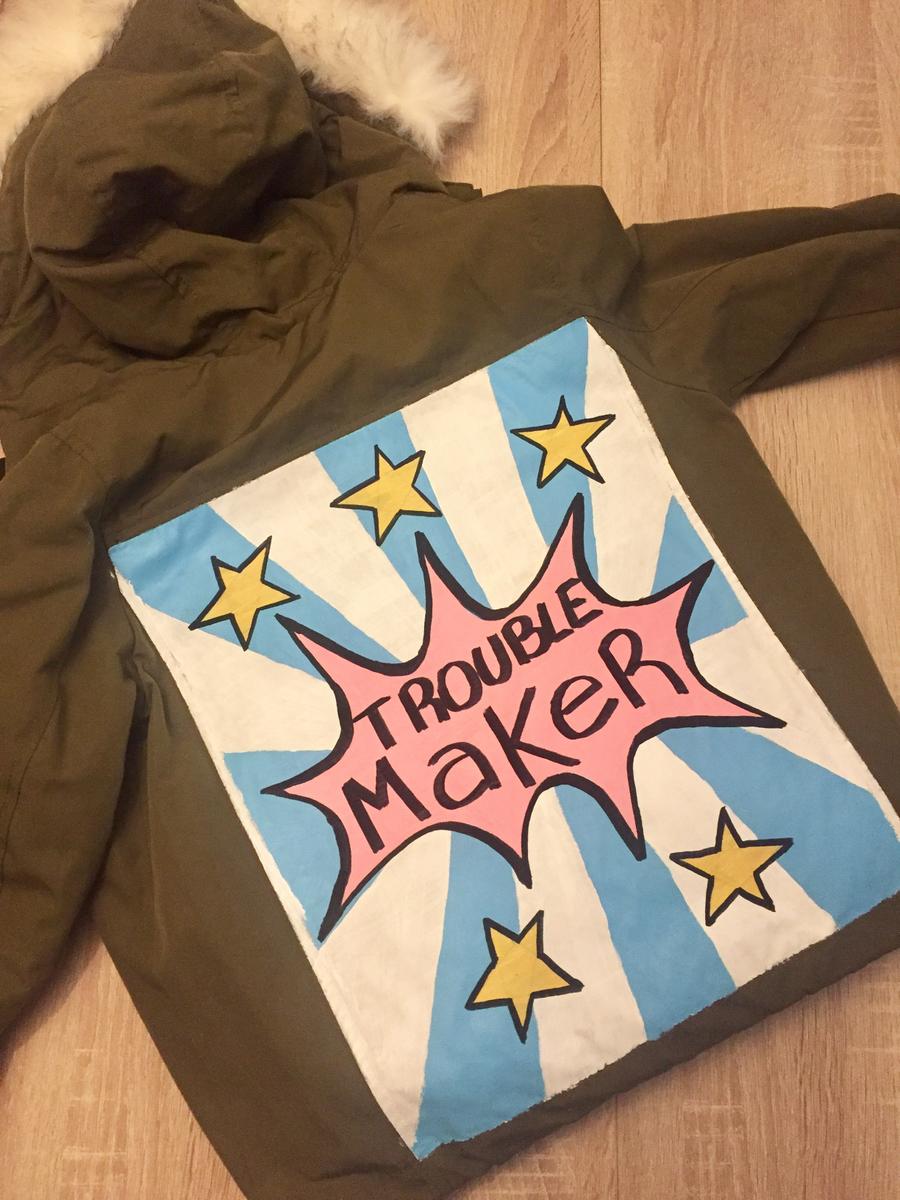 Archivado en: DIY Tagged: chaqueta, color, customizar, DIY, espalda, girl, mensaje, parches, parka, pintar, troublemaker, zara