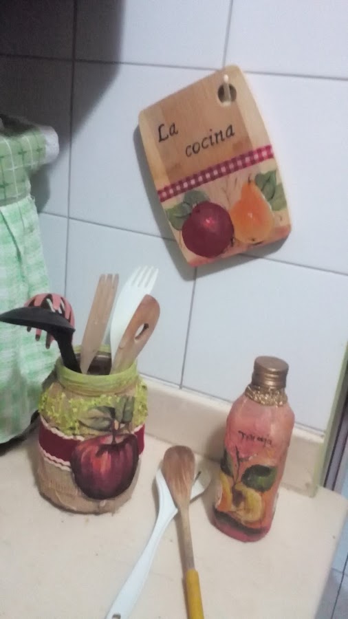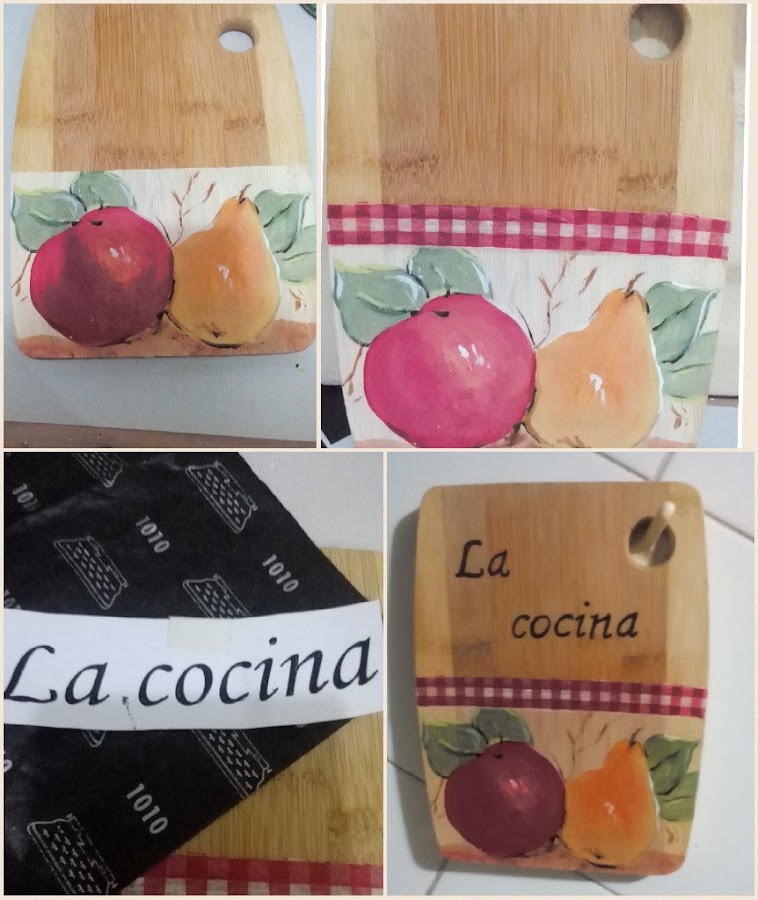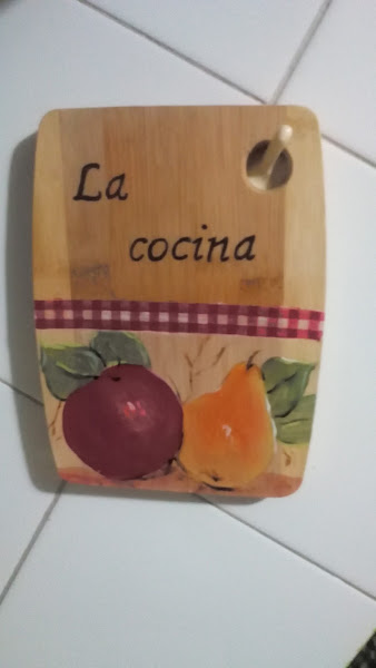 Ya terminada mi tabla de cocina esta decorando uno de los rincones de mi cocina