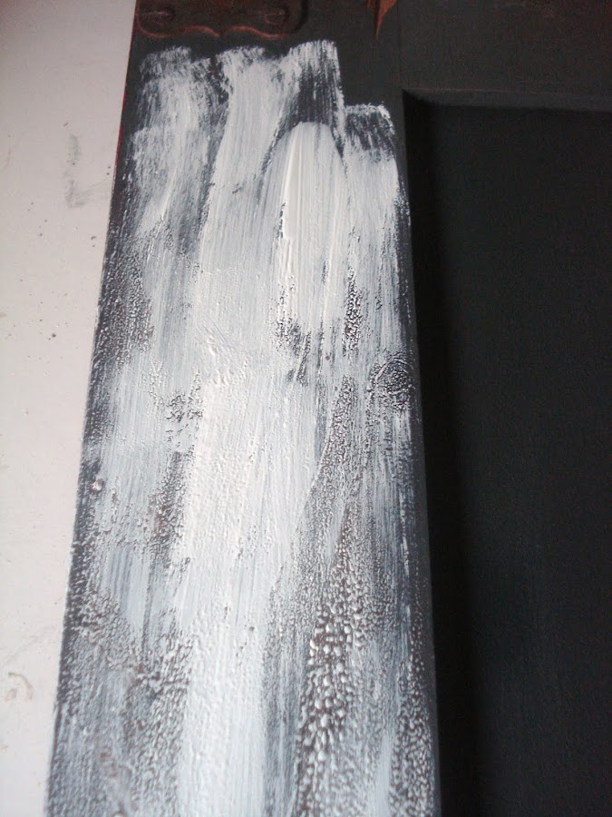 por tanto he pintado de blanco y he pasado un trapo húmedo para que asomara la pintura de la base.