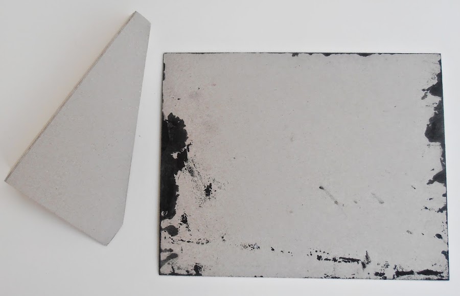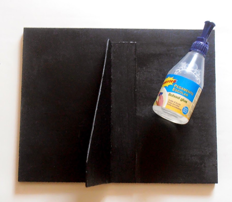 El cartón que he pintado con pintura de pizarra, por la parte trasera se ha ensuciado un poco...