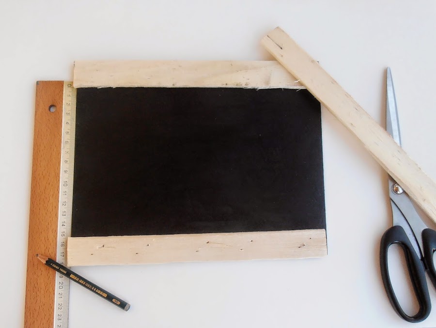 Como quiero darle un toque simpático a la pizarra, con adhesivo de doble cara