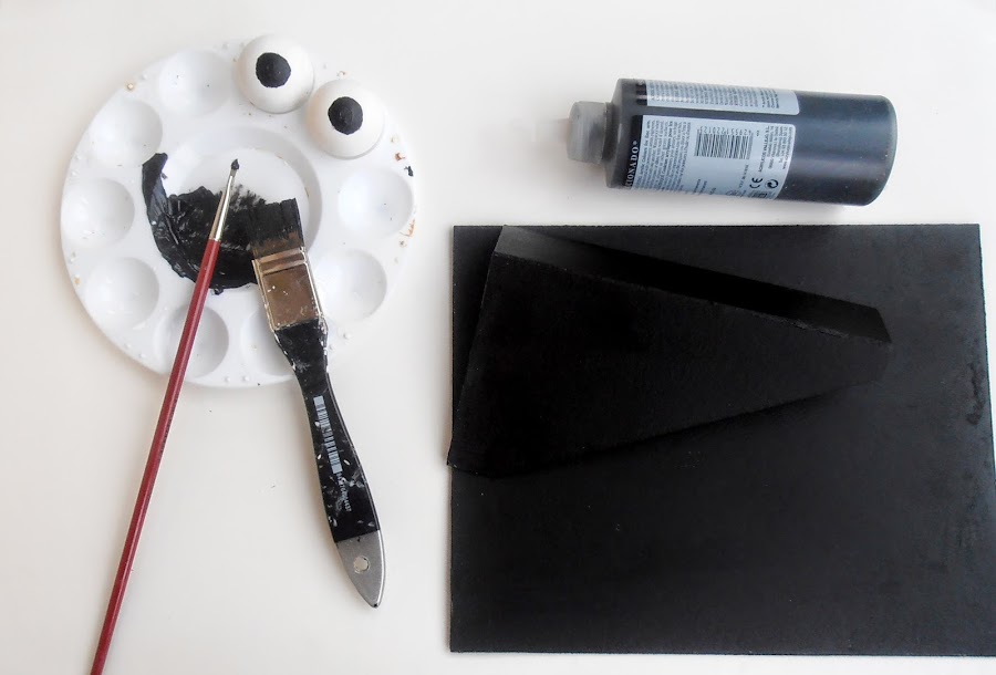 Lo pinto con pintura acrílica negra, y aprovecho para pintar los ojos.