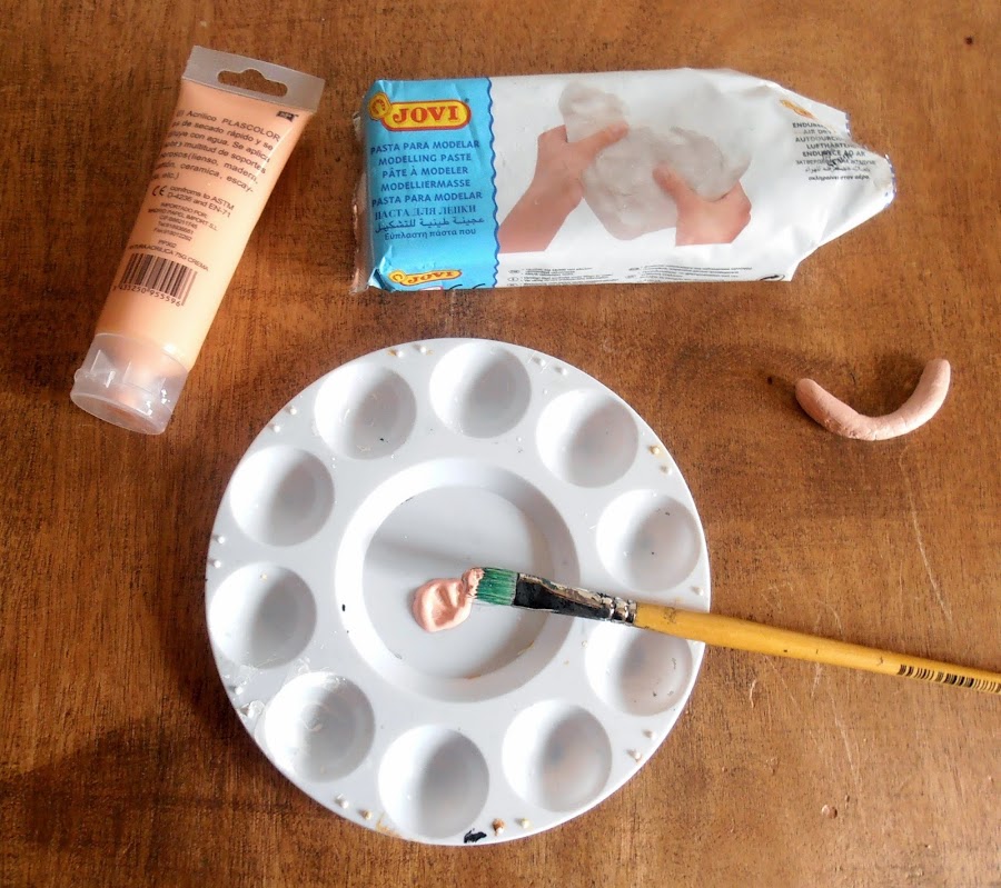 Con pasta de modelar hago un intento de labio, a modo de "smile", y la pinto