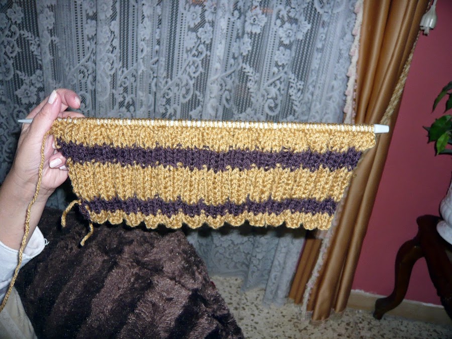 Tejer como se presentan los puntos: 1 punto del revés, 2 puntos del derecho, así toda la vuelta.