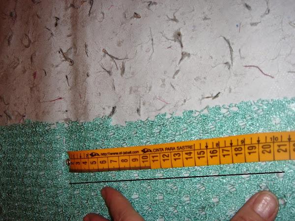 En los laterales mediremos desde el bajo ( acabado bonito ) hacia arriba 0,36 cm y marcaremos esta medida. esta sera la costura lateral con 1,5 cm de margen .