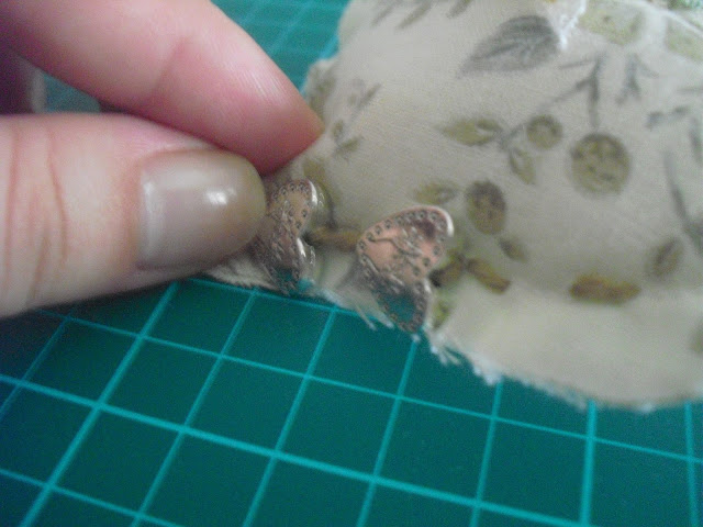 Os aconsejo que lo pongáis directamente contra la tela, y no entre el relleno, para que tenga la mayor fuerza posible... así: