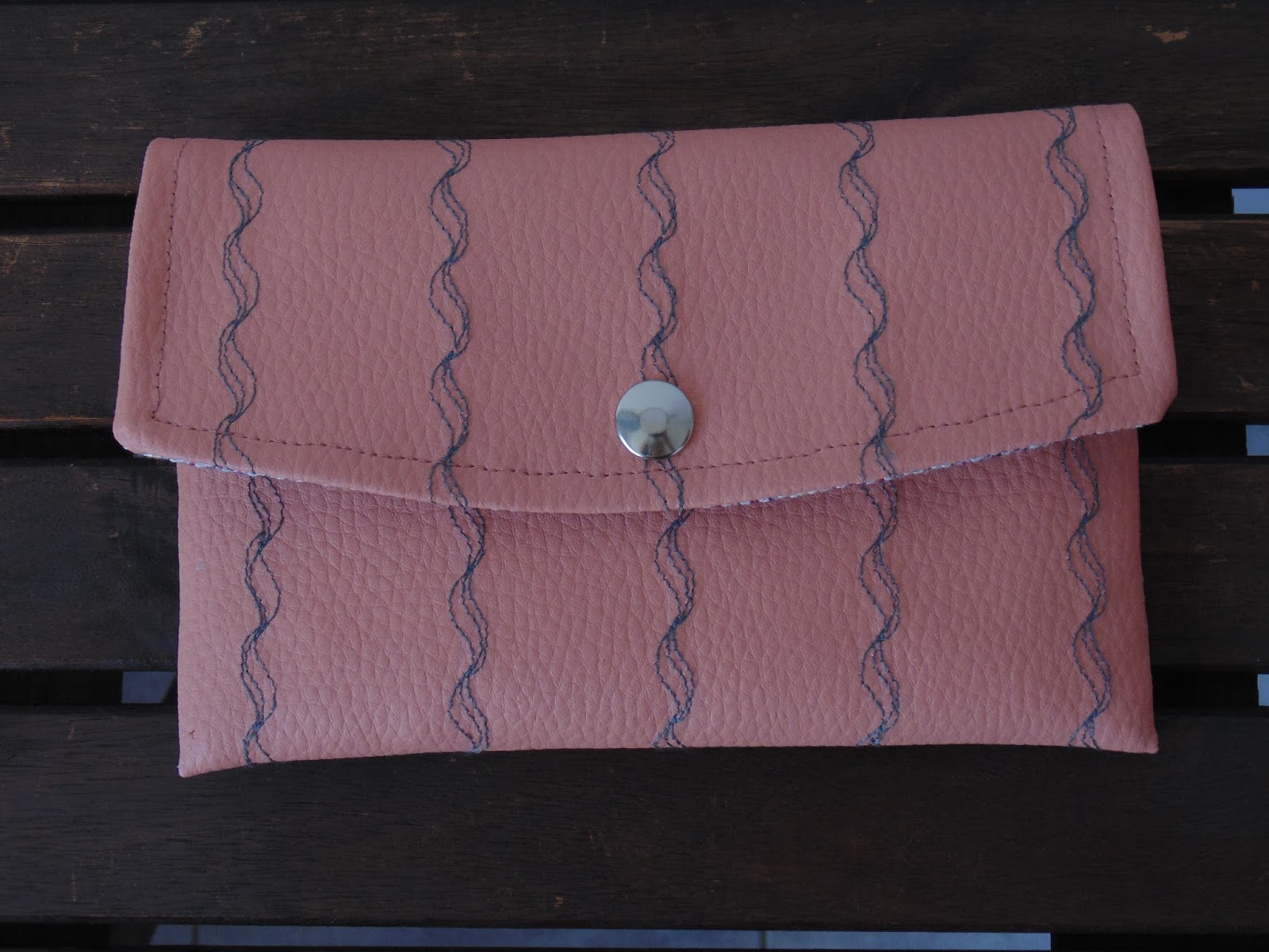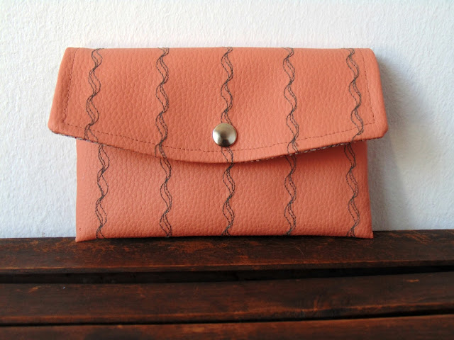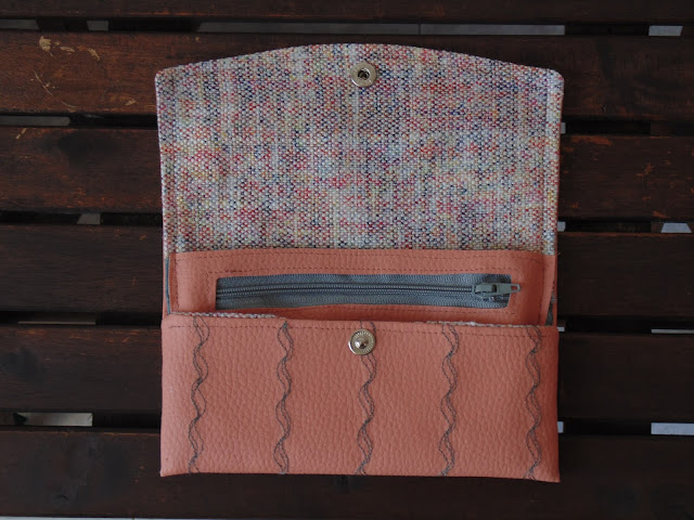 Pasé un pespunte sencillo en la parte de la tapa del monedero para asentar las telas y puse el broche a presión.