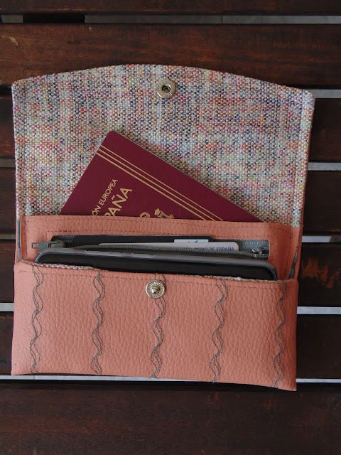 Hace unos meses me hice un tarjetero para llevar solamente las tarjetas cuando esté utilizando un bolso pequeño, podéis verlo aquí. Ahora necesitaba algo un poco más grande, para guardar documentos, móvil, etc...