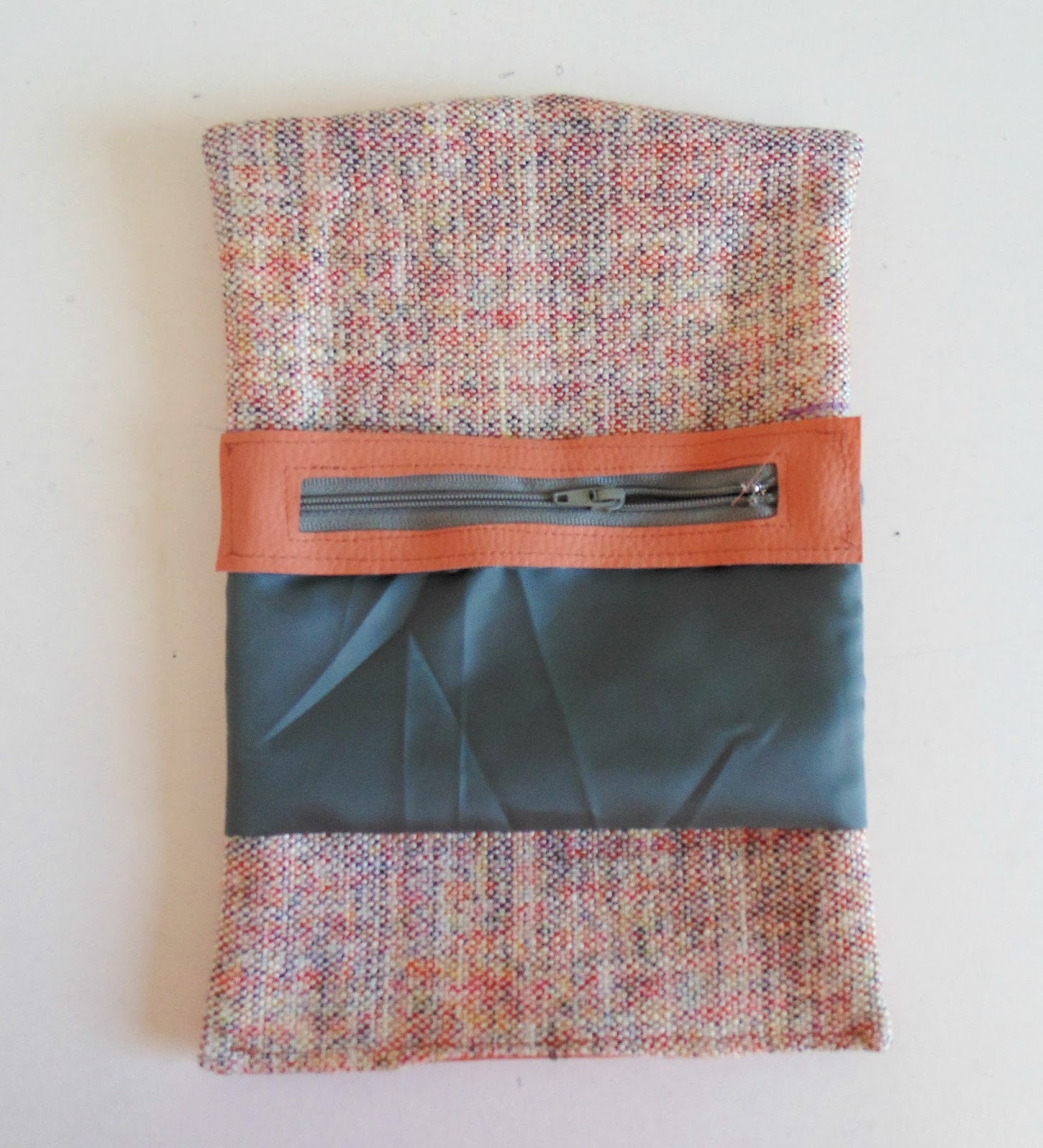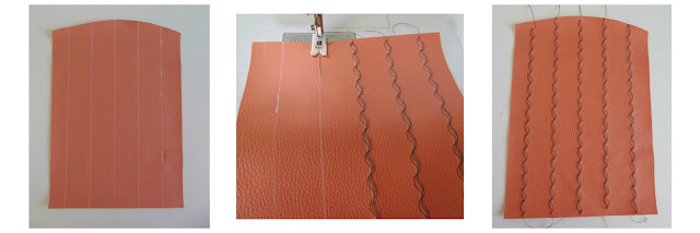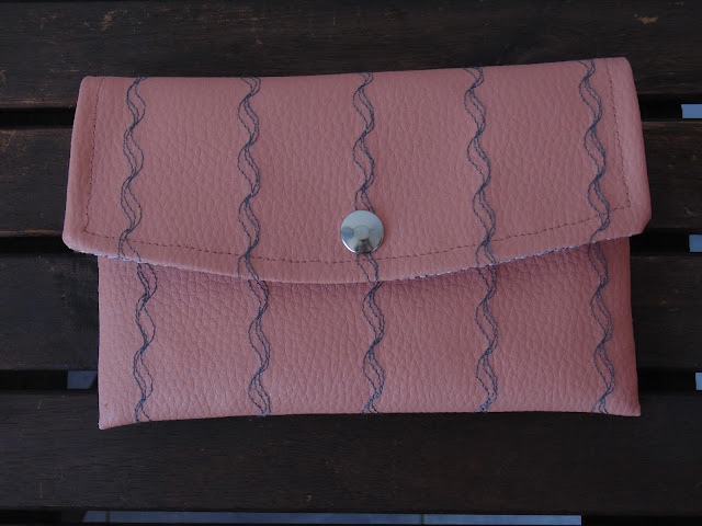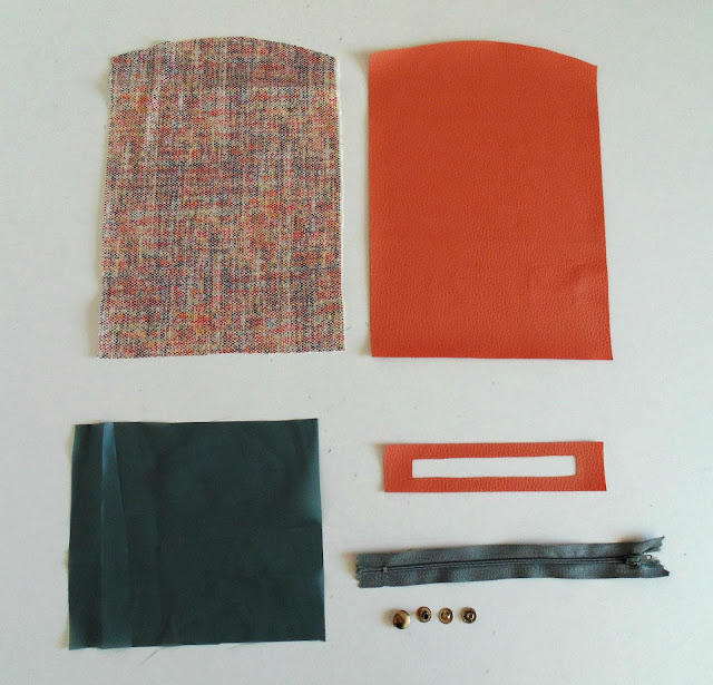 Utilicé polipiel rosa, tela para el interior, tela gris para el forro, una cremallera de 20cm y un broche a presión. Prensatelas de Teflon ® y aguja para piel.