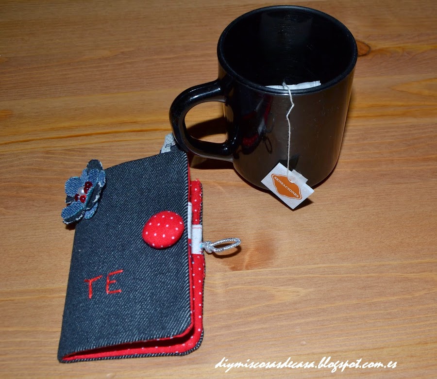 Ayer acabe este porta tés, con tela de un pantalón tejano reciclado, tela de algodón tipo patchwork y tela blanca de algodón. Fue fácil de coser y útil para aquellas personas que trabajan fuera de casa y no quieren renunciar a un momento de relax...