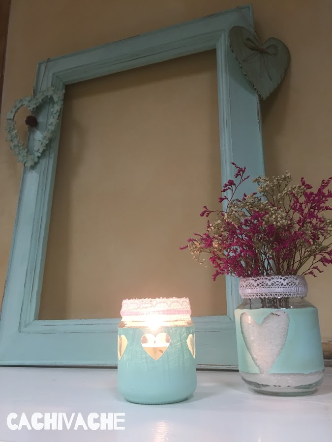 Para realizar este porta velas vamos a utilizar un elemento reciclado: un bote de cristal, que unido al color verde y a unos corazones, conseguiremos un efecto romántico decorando un rincón de nuestras casas. Y lo mejor de todo es que no vamos a necesitar ni mucho tiempo ni dinero para realizarlo.