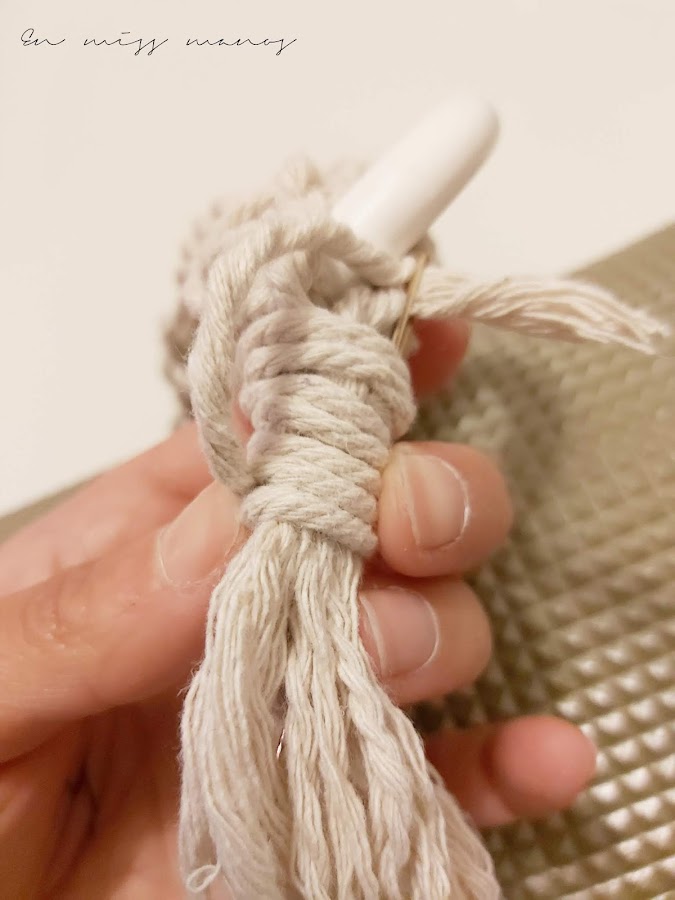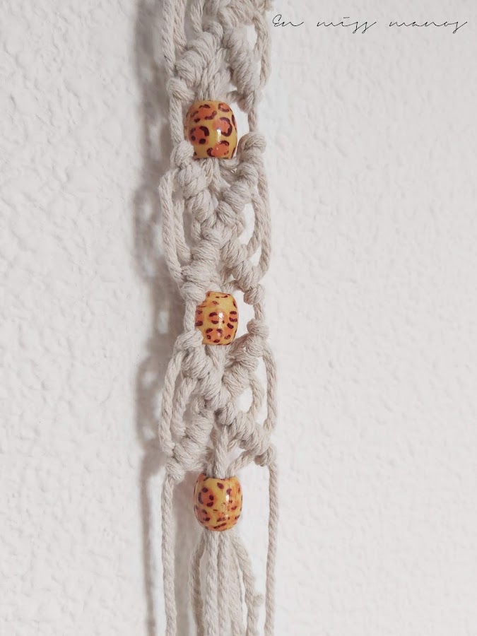Como veis no tiene mucha complicación ya que se trata de ir haciendo el mismo tipo de nudos todo el rato, pero requiere un poco de paciencia, de eso se trata el macramé, ¡que es entretenido a rabiar!