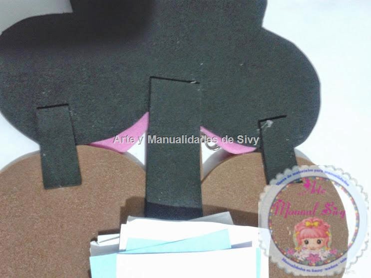 7.- En la parte inferior vas a pegar dos tiras de fomix y separando con un espacio entre la base y las tiras, con 6 cuadritos pequeños que te servirán para separar las tiras de la base.