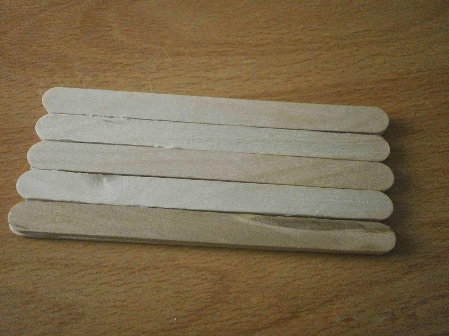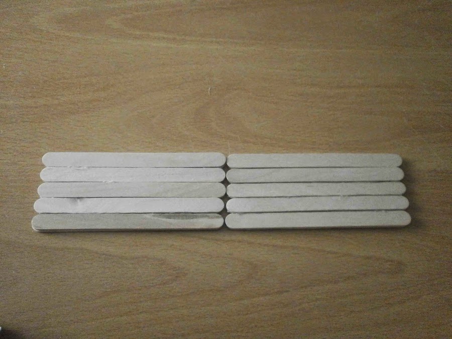Como los palitos de helado son muy finos los pegué de dos en dos con silicona.