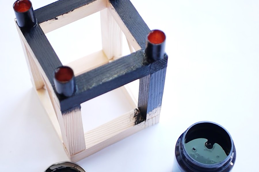 El portavelas más grande está pensado para poner 4 velas que no sean muy altas y utilizarlo como centro de mesa o para decorar un rincón y darle un toque especial. Las pequeñitas las he hecho con la medida justa para que encajen velitas de sobremesa y así conseguir un espacio con más encanto. Si te gustan, yo he utilizado las pinturas negro “black jack”, gris oscuro “dark iron” y gris clarito “sometimes”.