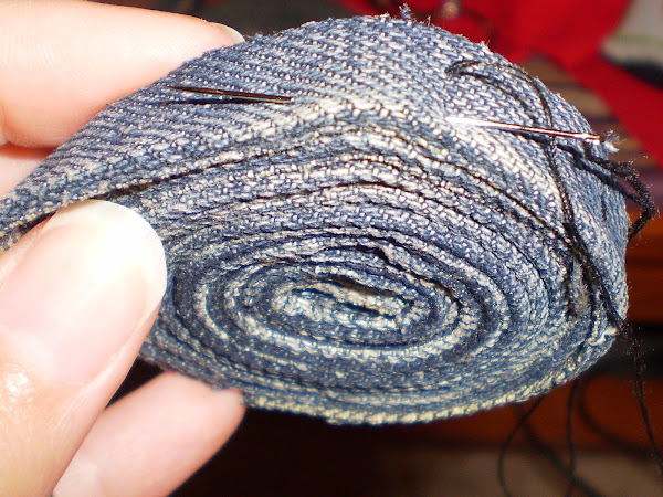 Si os quedáis sin pegamento, como me ha pasado a mí, o preferís no utilizarlo, a medida que se va haciendo la espiral se le van dando puntadas.