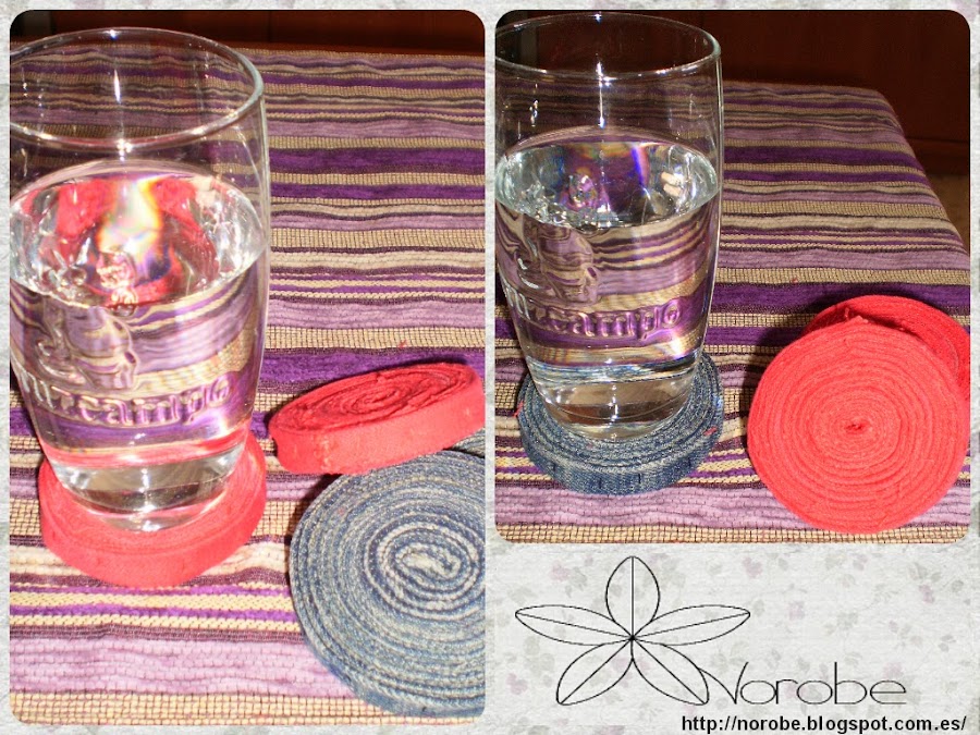 El otro día me puse a echar un vistazo por la red en busca de ideas y me topé con éstos originales posa-vasos muy sencillitos de hacer. La idea me encantó porque entre otras cosas, no tenía posa-vasos, vamos que los guardé y no sé dónde.