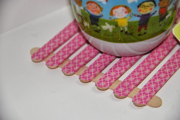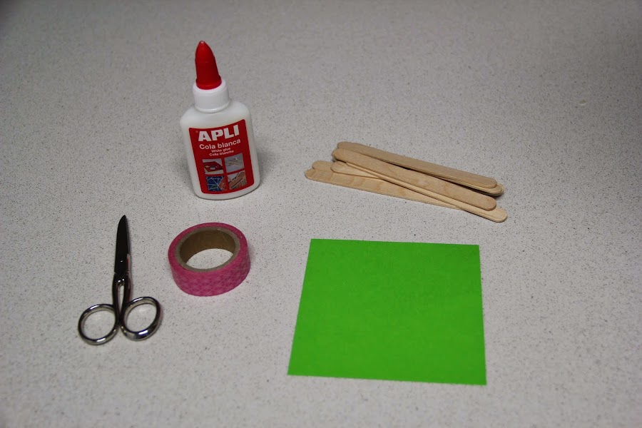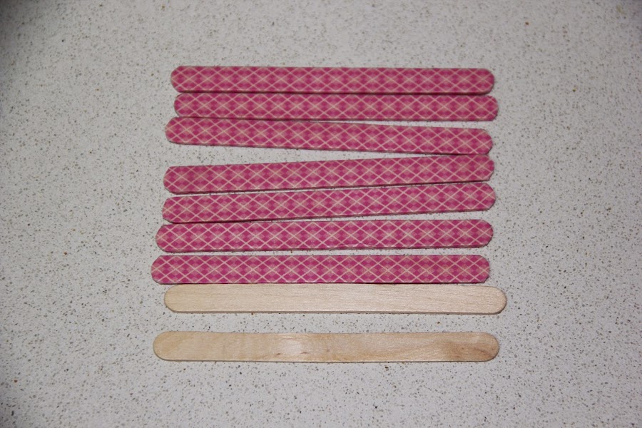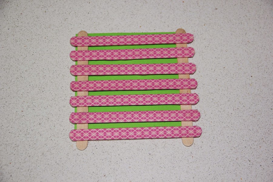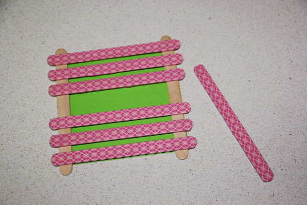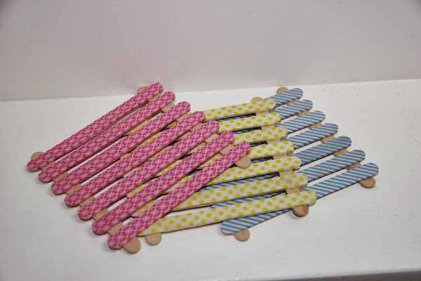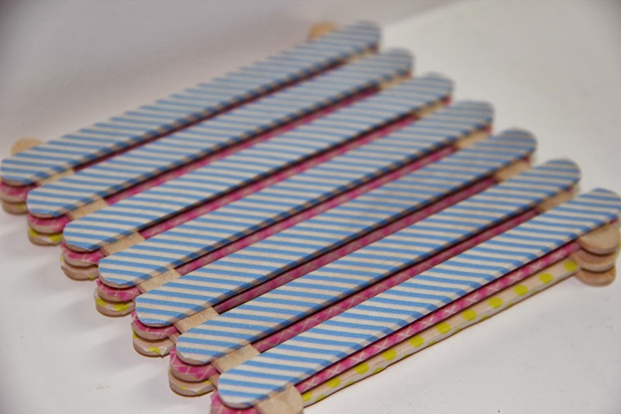1- Cover seven ice-cream sticks with washi tape by one of the sides.
