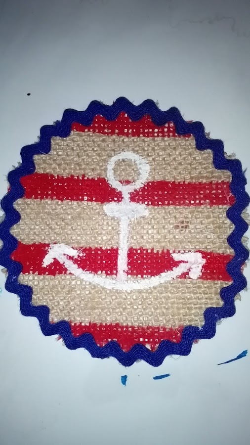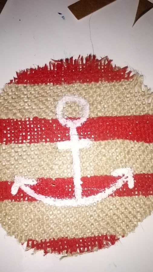 He hecho un ancla en color blanco acrílico para que se destaque sobre las franjas rojas.