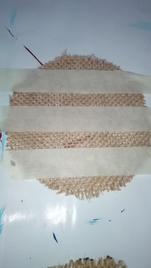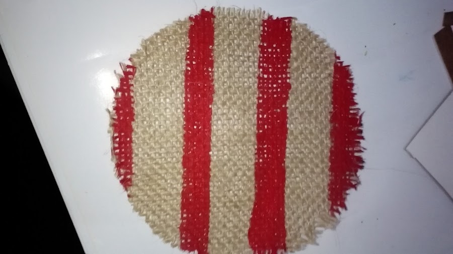 Lo primero que debemos hacer es recortar la tela de yute en forma redonda del tamaño deseado.